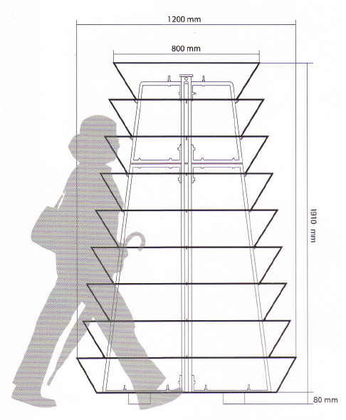 A legmagasabb virágtorony, amely ideális a szürke városi terek megújításához. 9 gyűrűből áll alj nélkül, amely lehetővé teszi a növényzet szabad növekedését. A termék sokoldalúsága lehetővé teszi, hogy bármilyen városi területre elhelyezzük, ahol hiányzik a természetes zöld.